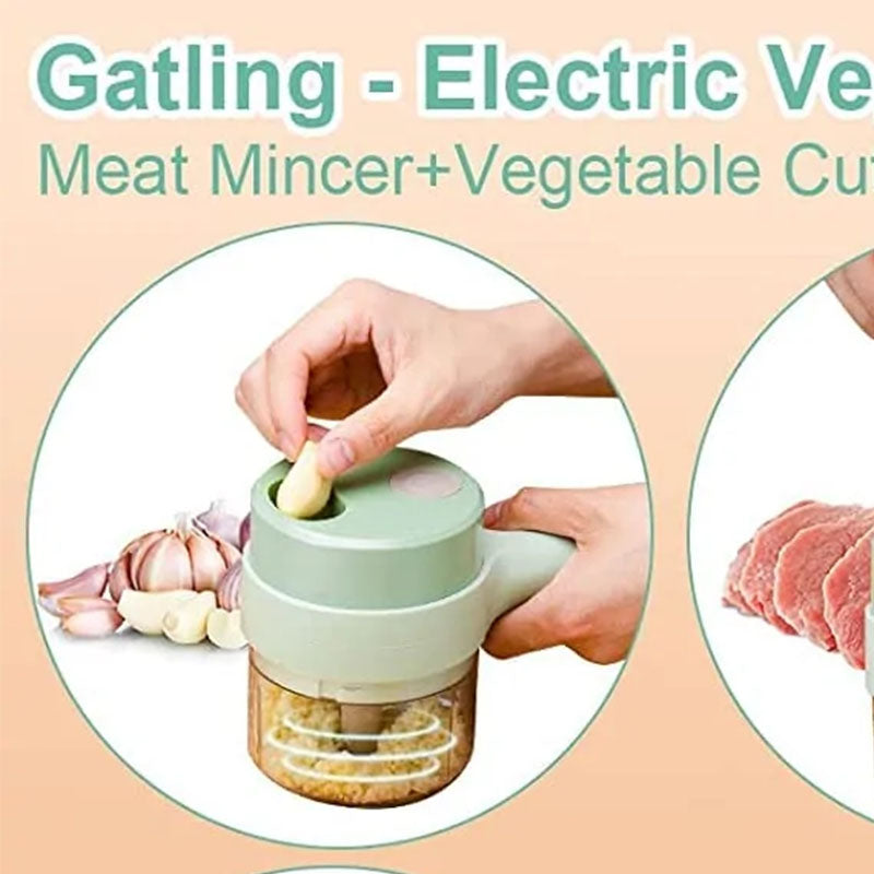 All the tools you need for fast and delicious meal. Save time on cooking and cleaning. 4 in 1 Hand Chopper has functions such as cutting, blending, peeling and cleaning all in one. With it, you can have an electric vegetable chopper and an electric cleaning brush simultaneously, a multi-functional set that will save your free time.