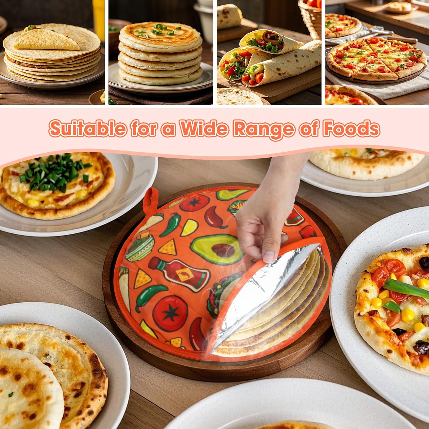 The thermal insulation layer keeps your tortillas, rotis, and chapatis warm for hours. Perfect for serving hot and fresh meals anytime.