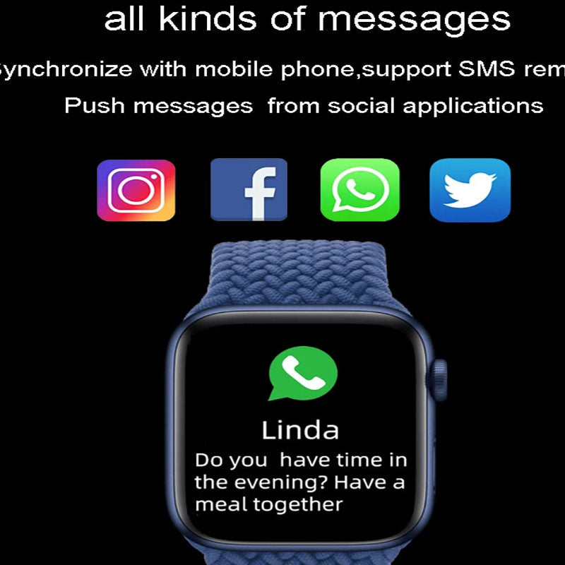 Support 1.44inch fulll touch screen, Bluetooth call, heart rate, muti-sports modes,exchange 44mm strap, bluetooth music, can customs watch faces.